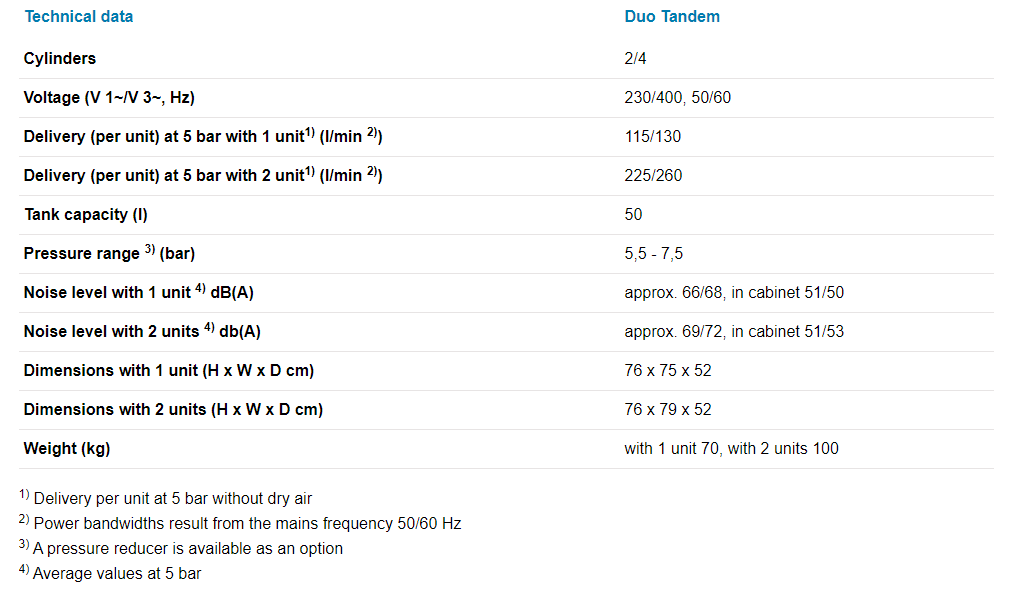 Ana / bağımlı kontrol sayesinde, Tandem kompresörler yan yana, yani tek bir basınçlı hava ağında paralel olarak çalışabilir.