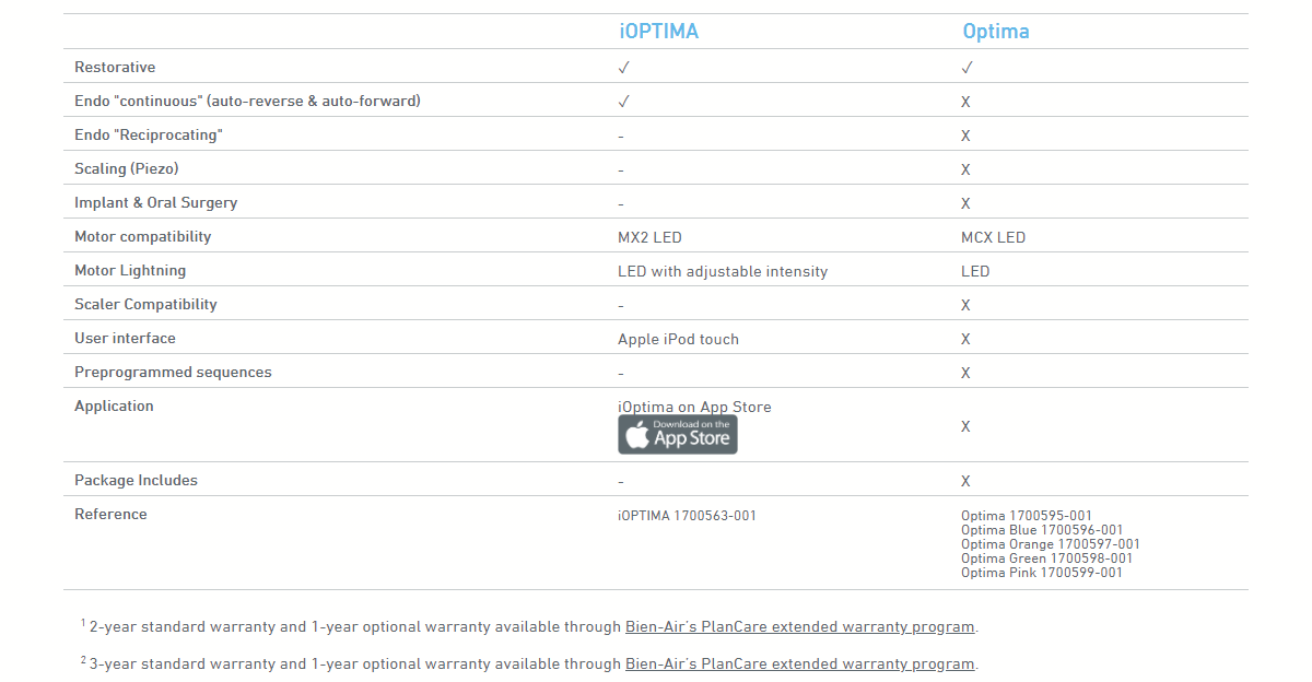 * 2 yıllık standart garanti ve 1 yıllık isteğe bağlı garanti, Bien-Air’in PlanCare uzatılmış garanti programı aracılığıyla sağlanır.