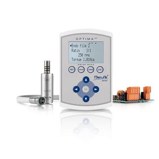 OptimaINT arayüzü, endodontik operasyonlar için önceden programlanmış 10 sekansa ve restoratif operasyonlar için 10 sekansa sahiptir. Kök tedavilerinizi tamamen güvenli bir şekilde gerçekleştirebilirsiniz. OptimaINT, otomatik ters işlevi sayesinde NiTi cihazının kırılma riskini en aza indirecek şekilde tasarlanmıştır. Distribütör-montajcınız, elektrikli veya hava ile çalışan ünitenizi fırçasız sensörsüz teknolojiye yükseltebilir. Bu, yüksek performanslı bir aracı normal birim kontrolünüzle birleştirmenize olanak tanır.