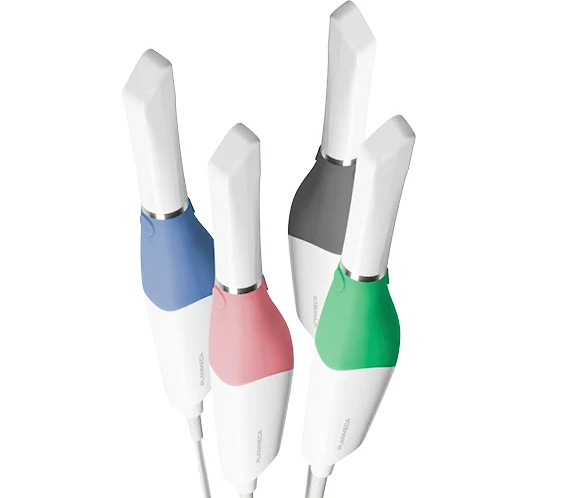 Standart başlığı destekleyen iki ek tarama başlığı ile Planmeca Emerald S cihazıyla her türlü tarama yapılabilir. Daha ince SlimLine ucu arka dişlere ulaşmayı ve interproximal bölgelerin yakalanmasını kolaylaştırır. Cariosity transillüminasyon (çürük tespit) başlığı çürük tespiti için mükemmel sonuçlar sunar.